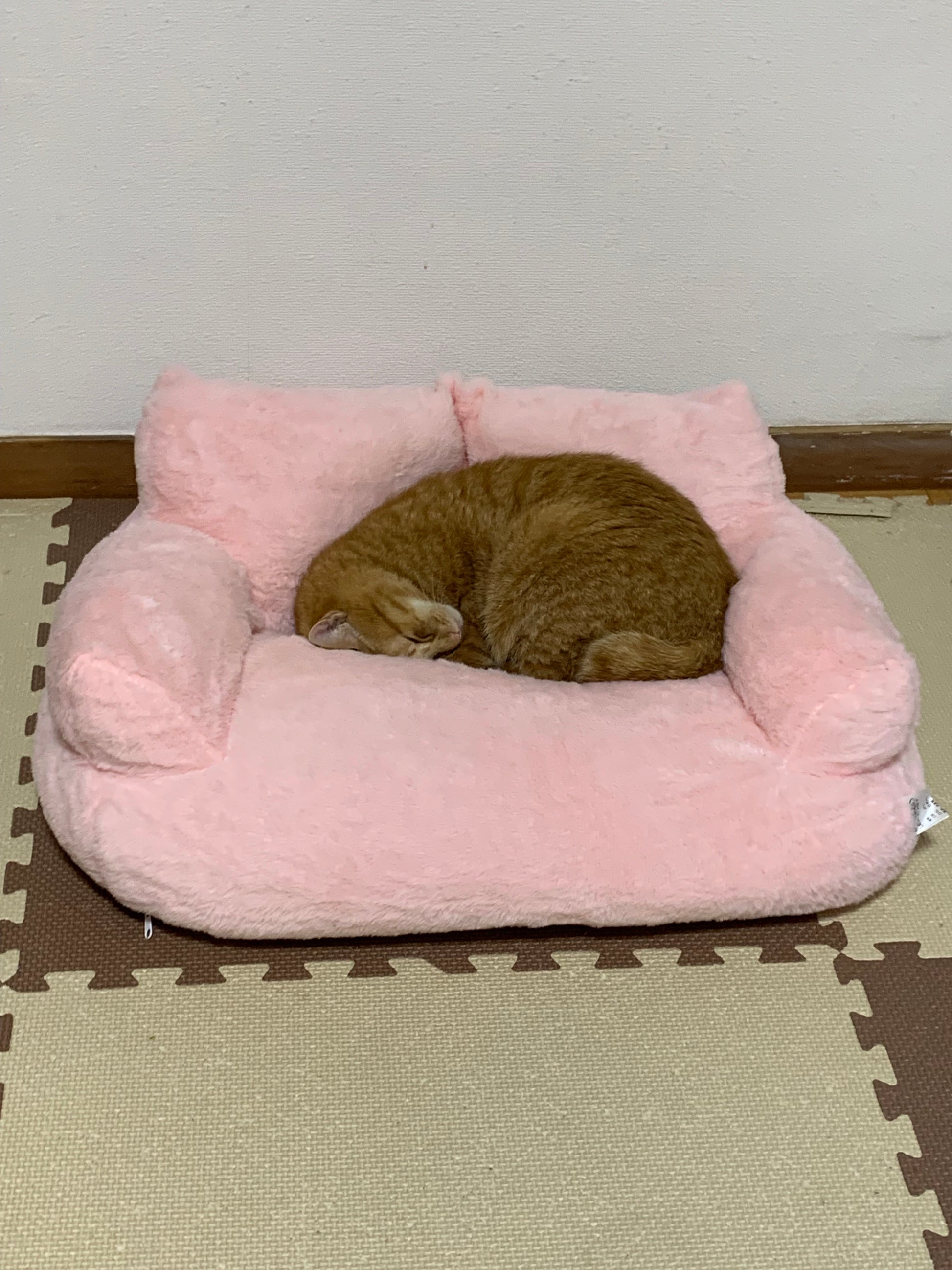 眠る姿がかわいすぎて、思わず写真を撮りたくなるソファです。