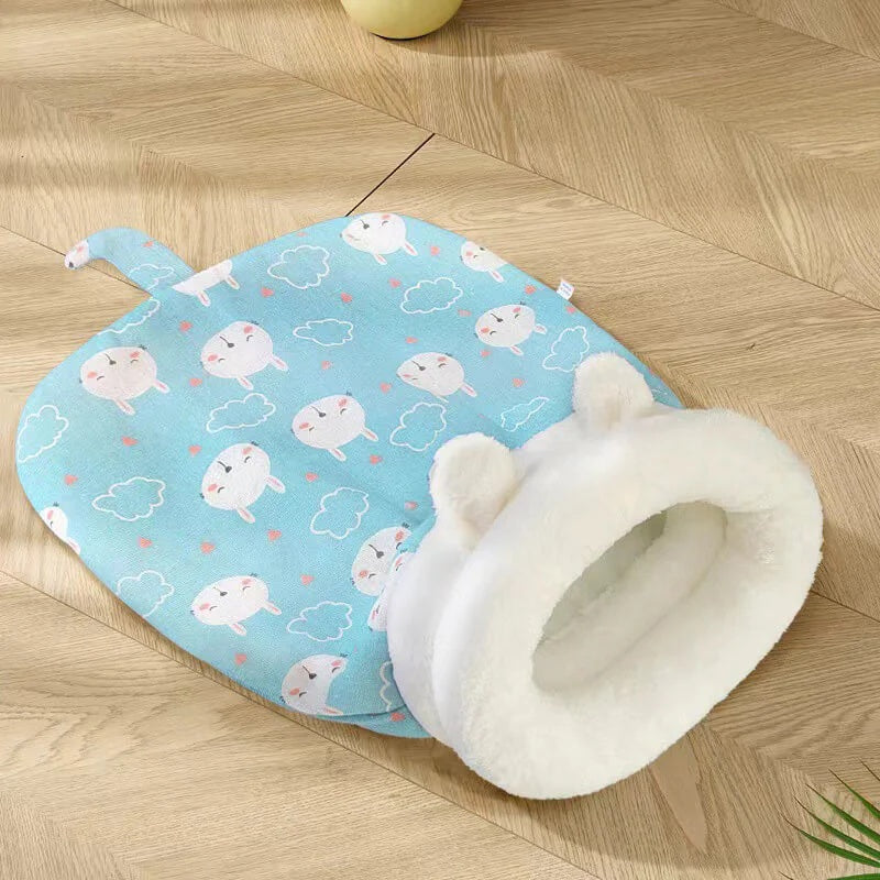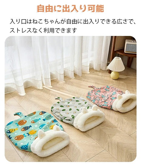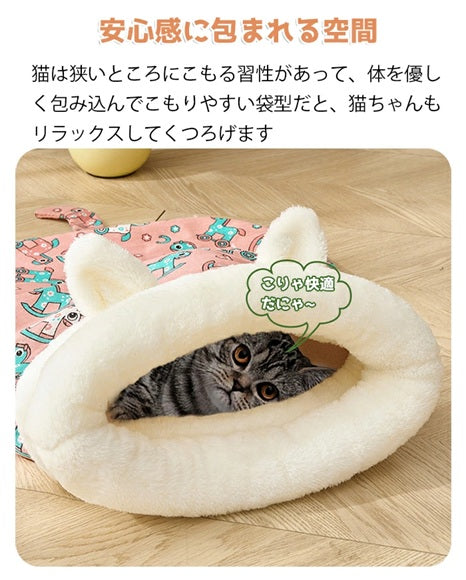 冬用 猫寝袋ベッド ふわもこ寝袋ハウス|暖かいフリース素材|洗える 保温・防寒 キャットハウス