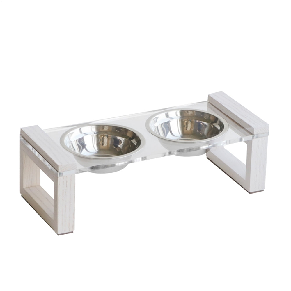 透明感と木目調が美しいペット用フードボウルスタンド「RIME(ライム)」。